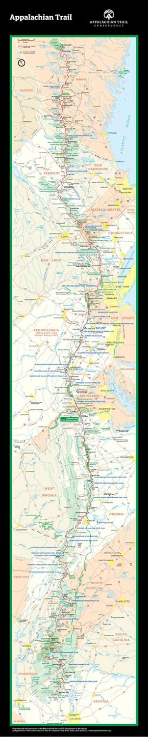 Introducing the Appalachian Trail Strip-Map Poster, a must-have for outdoor enthusiasts and adventurers alike. This beautifully detailed poster provides a unique and comprehensive view of the legendary Appalachian Trail, showcasing its entire route from start to finish.